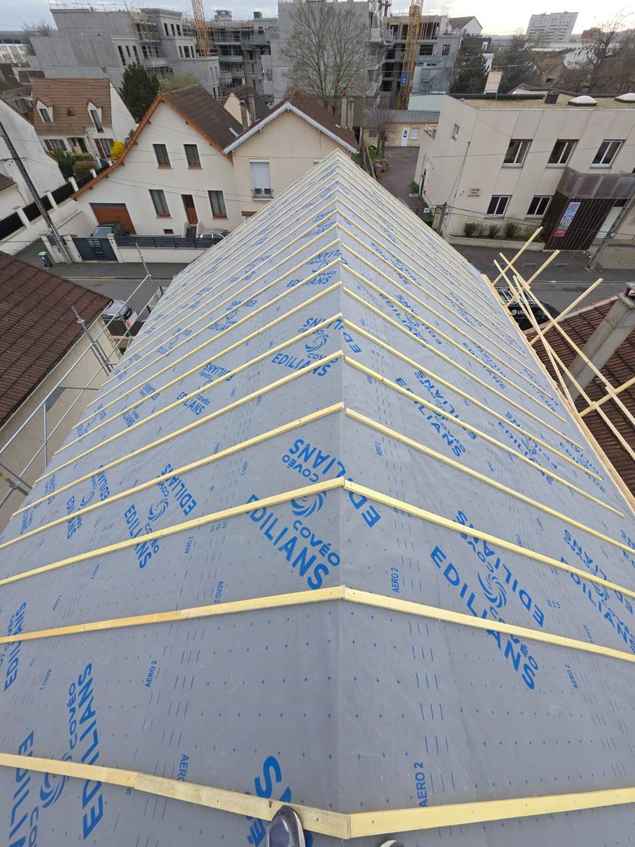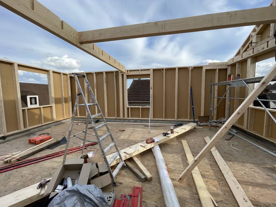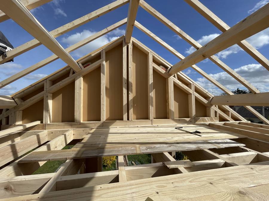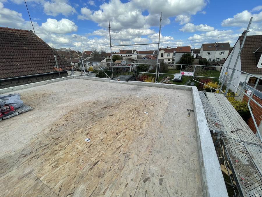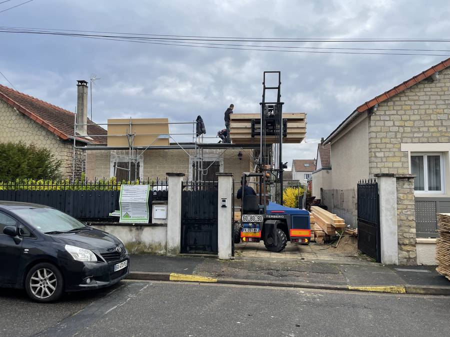 PM Projets réalise actuellement une surélévation de maison à Achères (78) en ossature bois, une solution idéale pour agrandir un logement sans contraintes structurelles importantes.